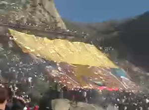 Des dizaines de moines de Drepung, l’un des monastères les plus prestigieux de Lhassa, ont protesté dernièrement, refusant de prendre part à une cérémonie bouddhiste traditionnelle lors de laquelle une grande peinture était dévoilée.